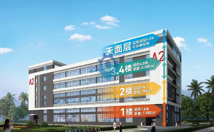 1楼:层高7.8米,承重1.5吨 2楼:层高7米,承重1吨 3-4楼:层高4.5米,承重0.5吨 顶楼:电梯直达,预留5.2米高花架,可做办公室、接待会所等 【户型面积】3100㎡-6242㎡ 【户型长宽】82m×18m 【使用年限】50年 【最低首付】20% 【产品特色】 高拓展:买4层用7层、送院子、送连廊; 自带 4.2万方商政配套,产城融合; 主路旁,4 分钟上西环高速 交通便利。