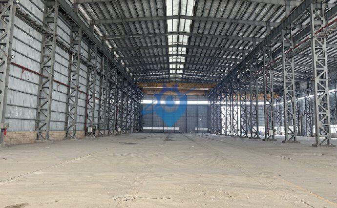 珠海市金湾区25米高?单一层钢结构?厂房面积约9千平方?带硬化好的空地出租 滴水21米?行车梁下面?19米最高点25米??有32吨行车?有16吨行车