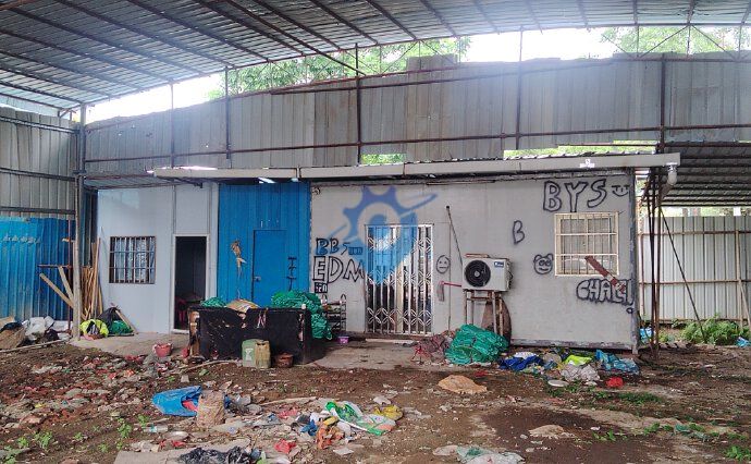 斗门区白蕉镇,白蕉大道附近 独门独院空地大,可进大车等等 适合仓储,塑胶破碎,废品回收等等行业 铁皮棚一楼,现成办公室出租